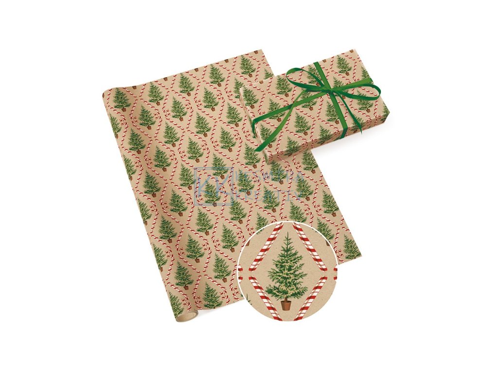 Velká role dárkového papíru v rozměru 70 × 200 cm v kraft provedení s mixem pěti vánočních vzorů – ideální pro balení větších dárků či hromadné použití.