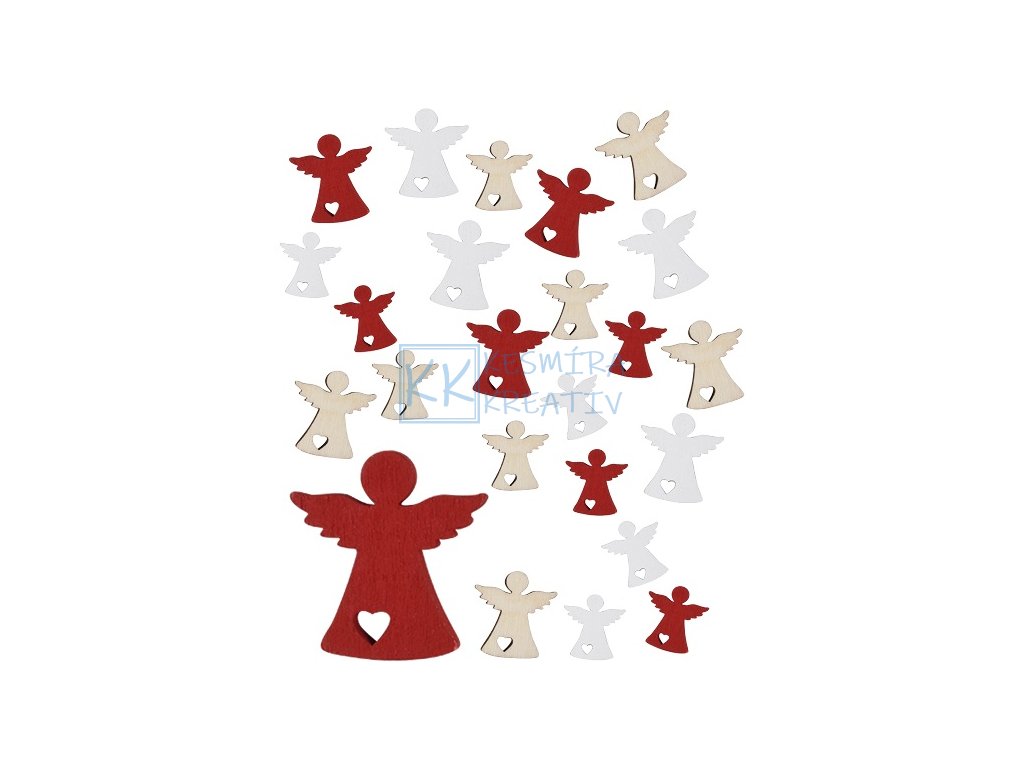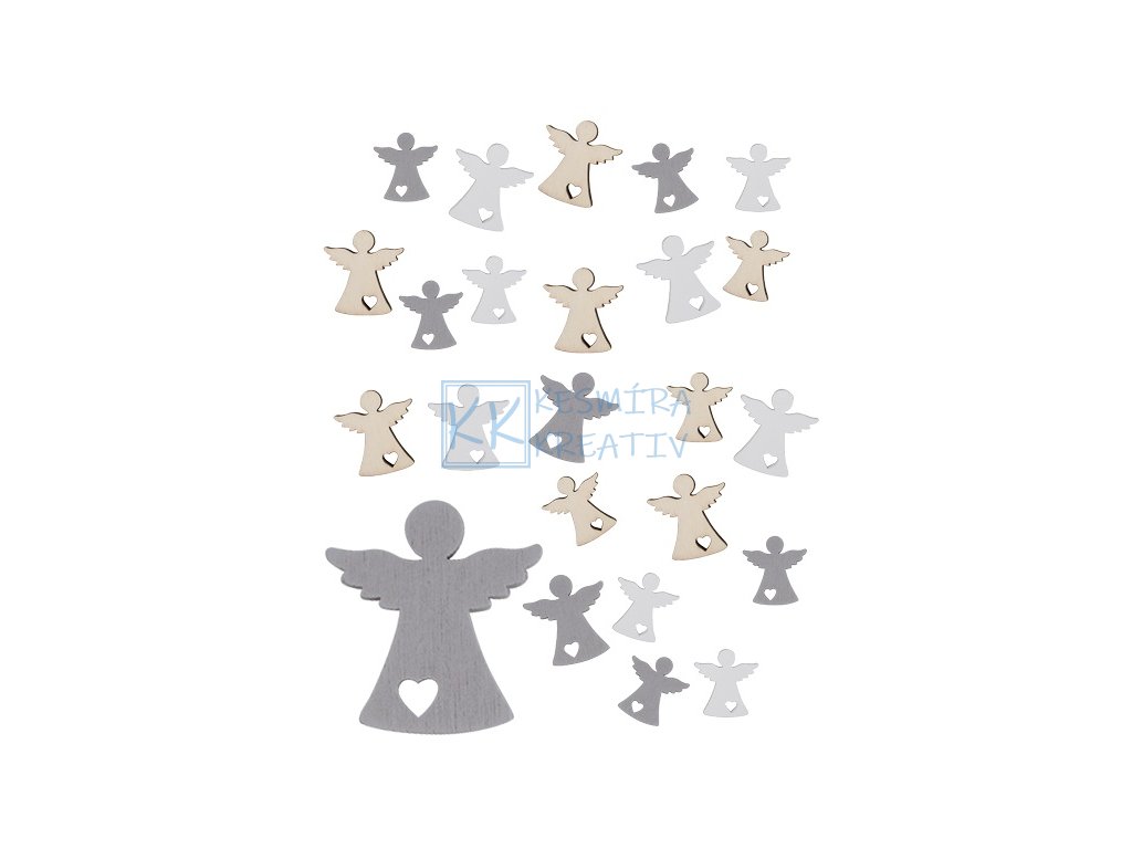 Dřevění andílci – mix barev a velikostí, 24 ks v krabičce