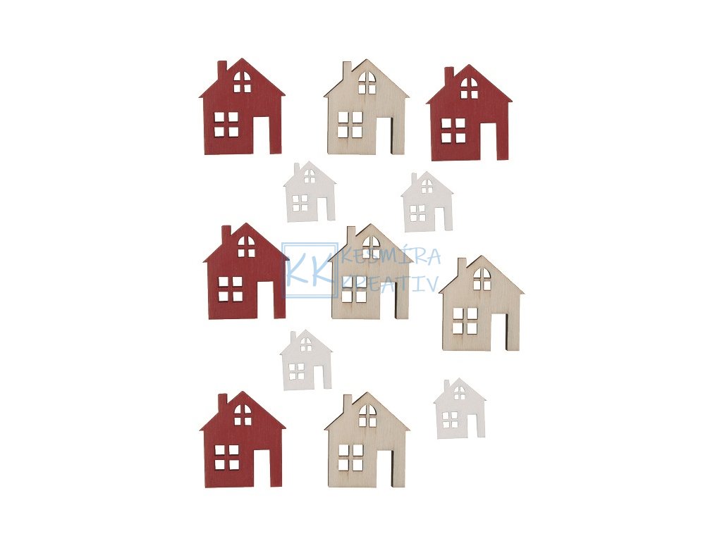Dřevěné domečky mix velikostí cca 4 cm, 12 ks - výběr barvy