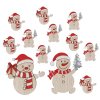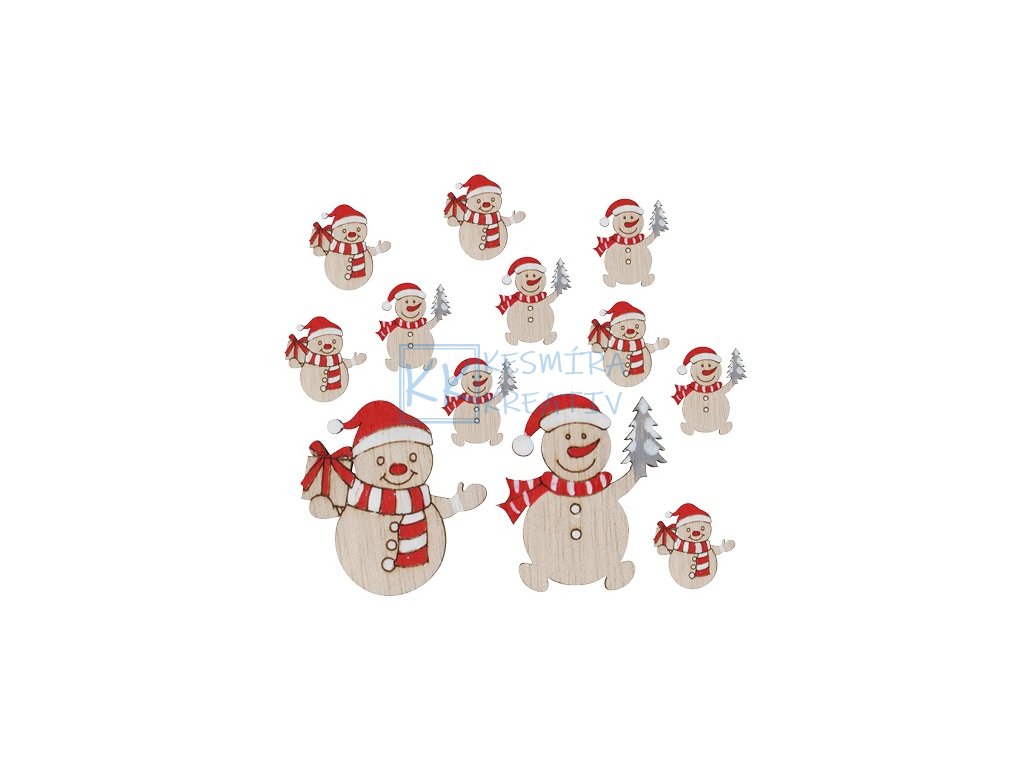 Sada obsahuje 12 dřevěných výřezů ve tvaru sněhuláků o velikosti cca 4 cm, s nalepeným lepidlem — připravené k okamžitému použití. Jsou ideální pro zimní a vánoční výzdobu, zdobení dárků, přáníček, věnců, dekorací nebo pro drobné DIY projekty.