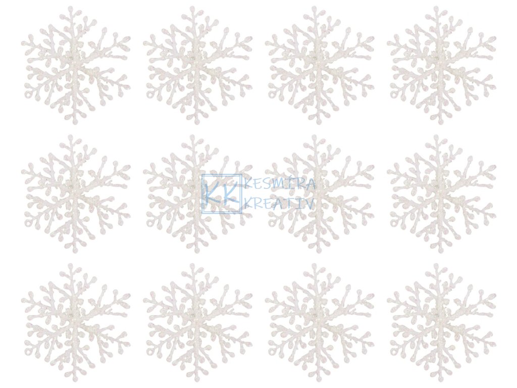 Vločky bílé jemné s glitry 12ks, 5,5cm