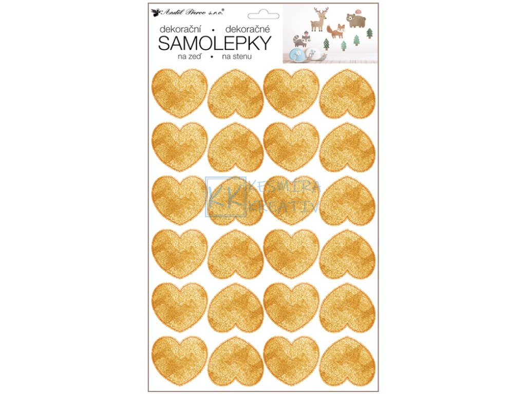 Samolepky na zeď Srdíčka zlatá, 24x42 cm