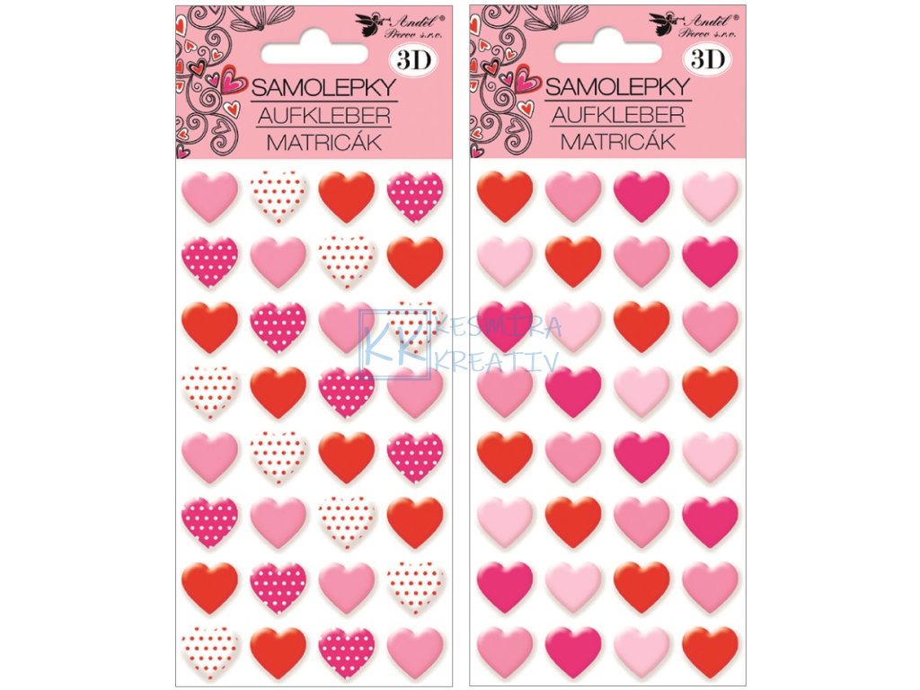 Samolepky Srdíčka 3D, 9,5x22 cm