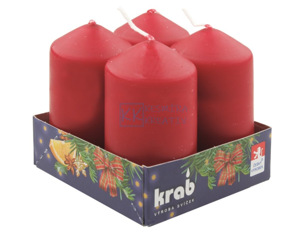 Sada 4 válcových svíček (40 × 80 mm) dostupných ve více barvách – ideální pro adventní věnce, stolní dekorace i sváteční atmosféru.
