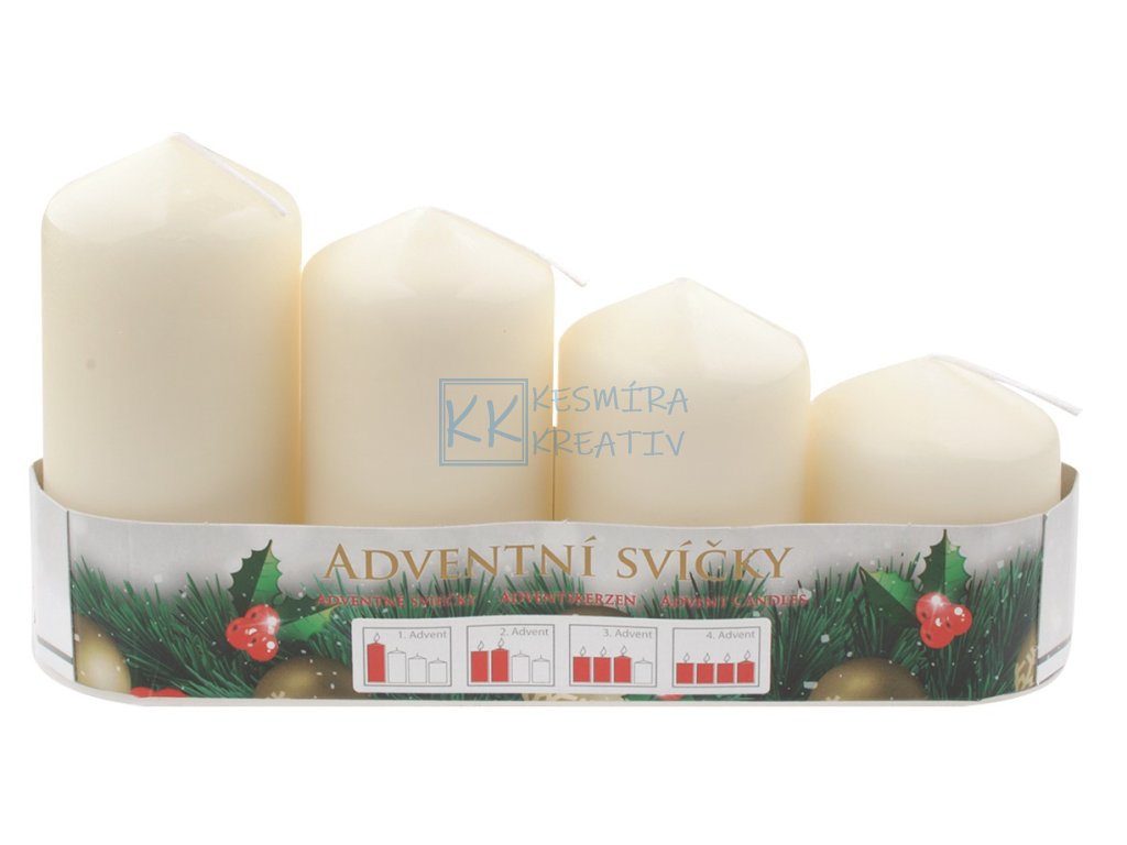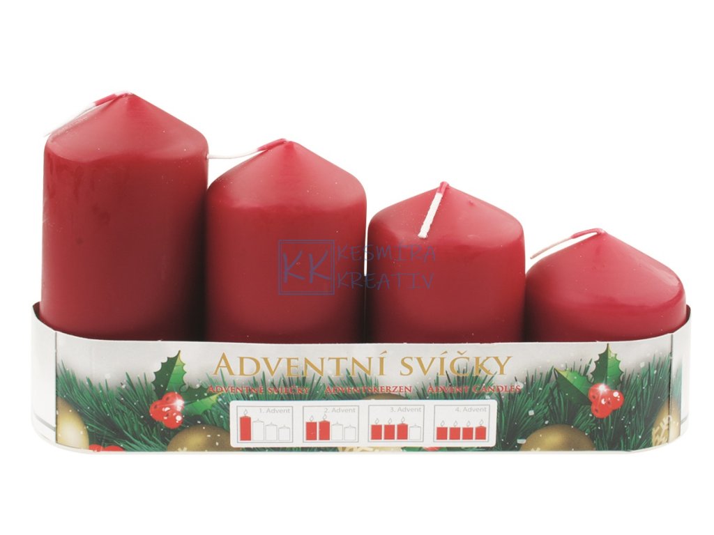 Válcové adventní svíčky – sada 4 ks, variabilní výšky
