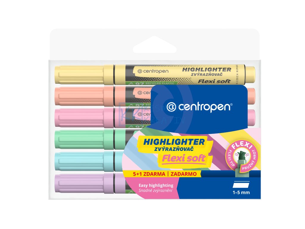 Sady zvýrazňovačů Centropen Flexi 8542 zaujmou jemnými barvami a flexibilním hrotem, který se přizpůsobí tlaku ruky. Ideální pro školu, kancelář i kreativní tvoření.